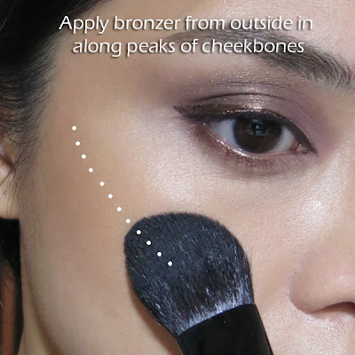 Tip: I always apply matte bronzer or contour powder from the outside in. This way, you get more color on the outsides, and avoid the overly dark, muddy streak when too much product gets deposited on the insides.